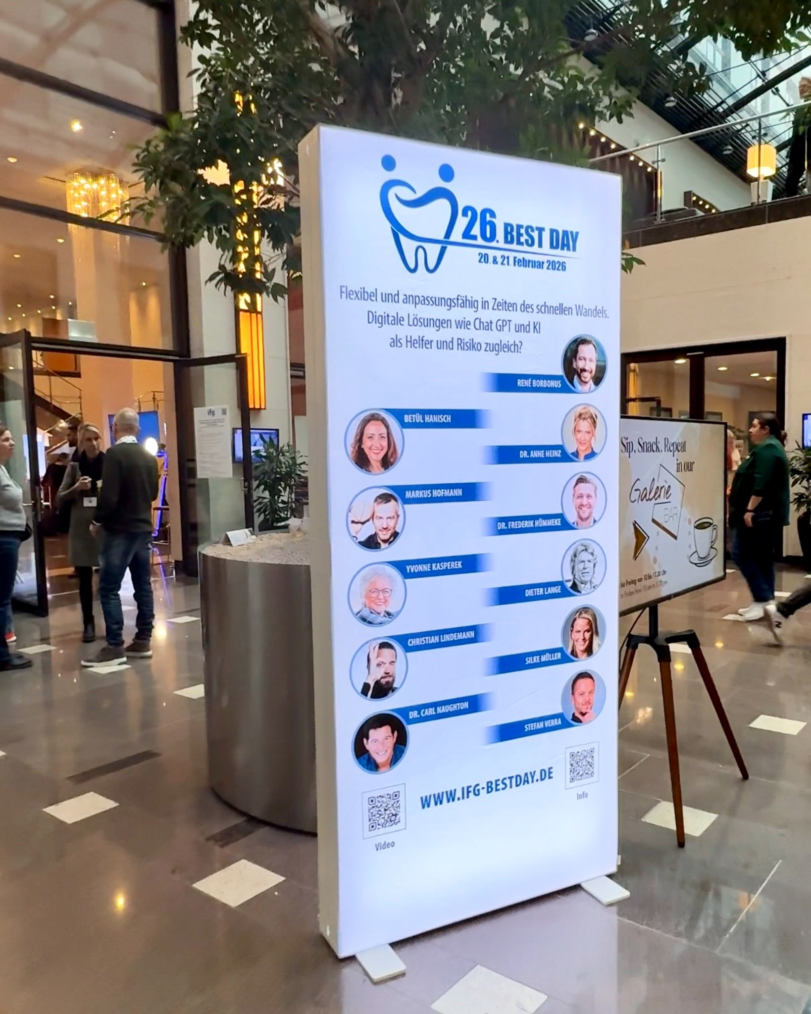Unter dem Motto „Flexibel und anpassungsfähig in Zeiten des schnellen Wandels – Digitale Lösungen wie ChatGPT und KI als Helfer und Risiko zugleich“ hatte die IFG-Fortbildung zu einer hochkarätigen Veranstaltung eingeladen, die ganz im Zeichen der digitalen Zukunft der Zahnmedizin stand.