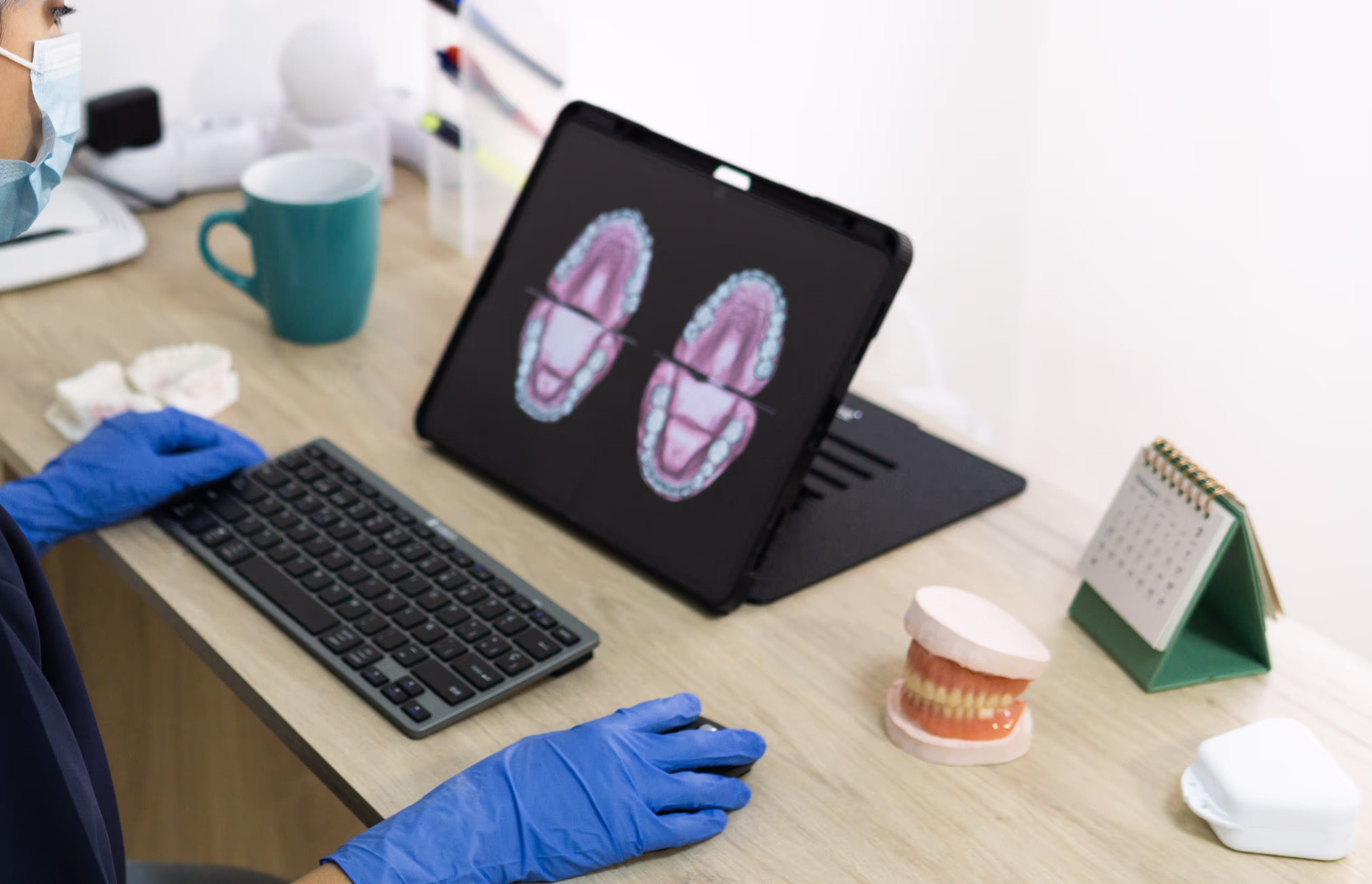 Der Scan wird in Form eines virtuellen, dreidimensionalen Modells auf unseren Cerec-Computer übertragen. Hier planen wir “chairside” – also direkt neben unserem Patienten, der den Arbeitsablauf live verfolgen kann – unsere neue Restauration. Wir achten dabei nicht nur auf ein schönes Design, sondern auch auf die optimale Größe und Form des Zahnersatzes, damit die neue Versorgung zu den benachbarten Zähne passt und einen störungsfreier Zusammenbiss erzielt wird.