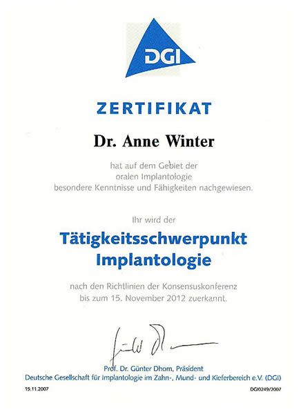 Bei uns steht Ihnen ein ganzes Team von qualifizierten und erfahrenen Zahnärzten zur Verfügung, die sich in unterschiedlichen Gebieten intensiv fortgebildet haben. Die Möglichkeit, sich in einem „internen Netzwerk“ über Patientenfälle abzustimmen und auszutauschen erhöht nochmals die Qualität Ihrer medizinischen Betreuung.
